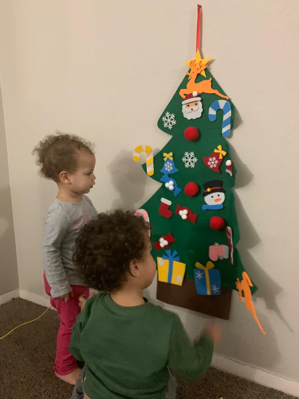 My kids are obsessed! They learned all the colors and ornaments so quickly, and it keeps them happily busy while I prep dinner.